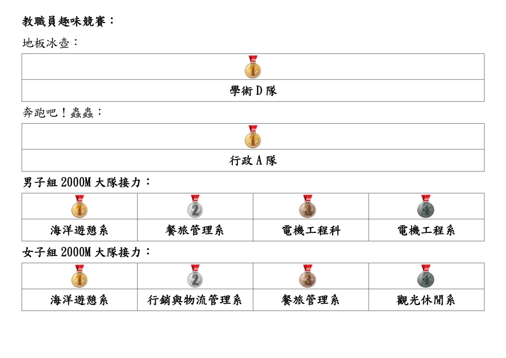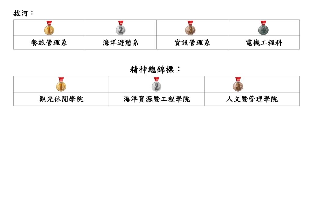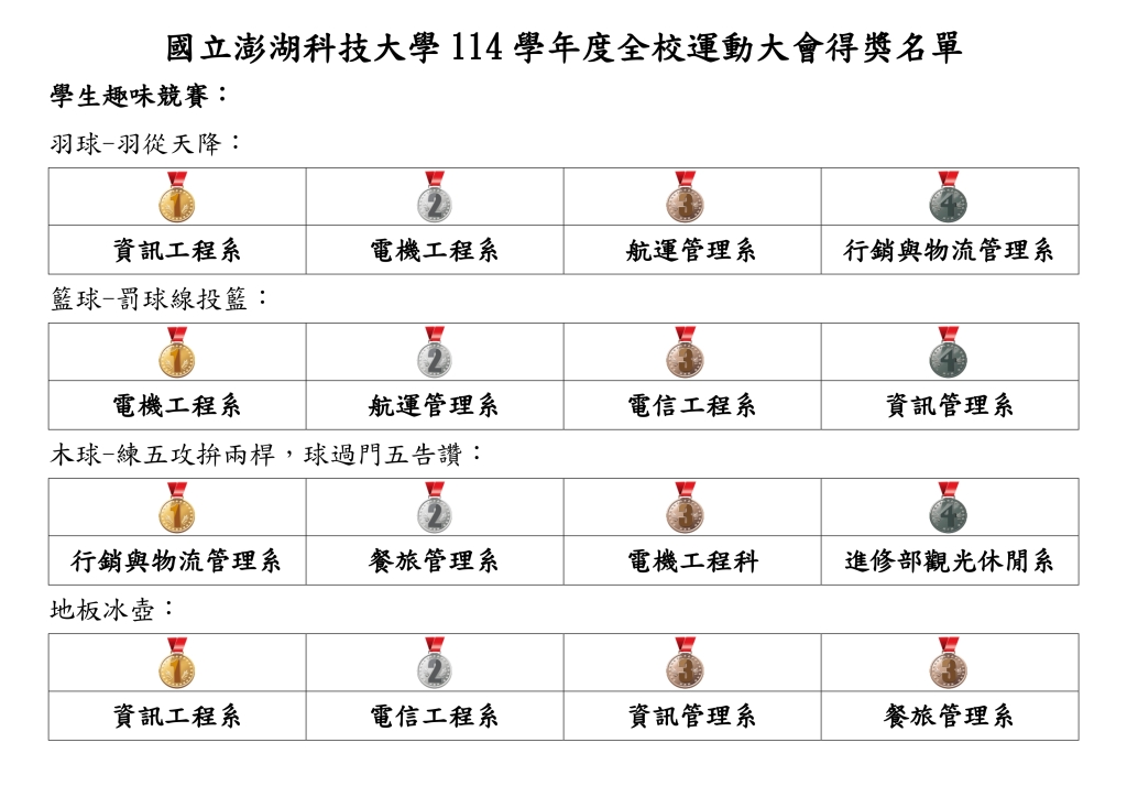 國立澎湖科技大學114學年度全校運動大會 得獎名單
