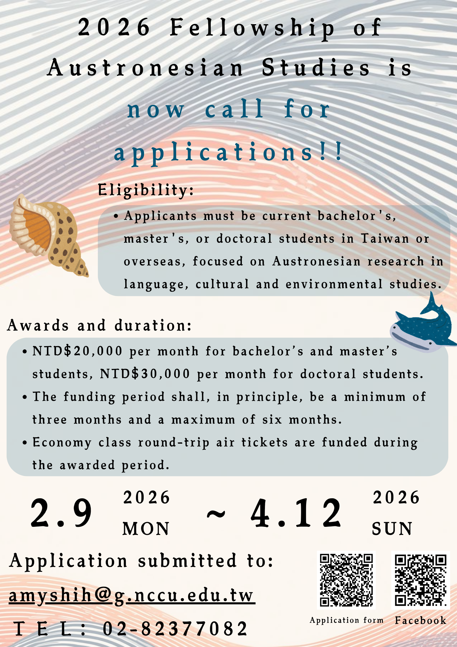 【19】114-2國立政治大學南島研究講座辦公室「2026年第一梯次南島研究獎學金」**自行申請**