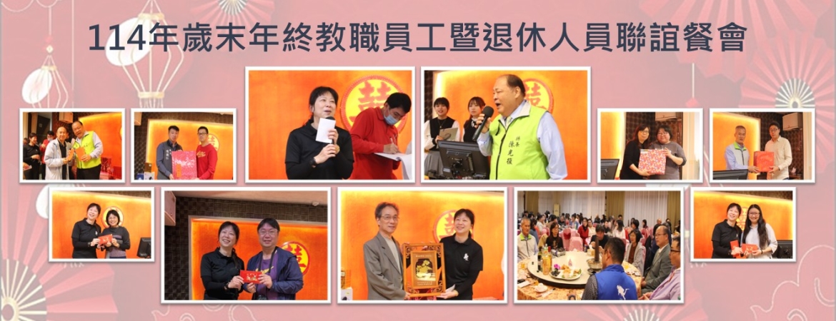 114年12月24日假阿東海鮮餐廳舉辦「114年歲末年終教職員工暨退休人員聯誼餐會」 餐會中頒發退休紀念金牌予蔡明惠教授,並進行摸彩品抽獎活動炒熱現場氣氛。