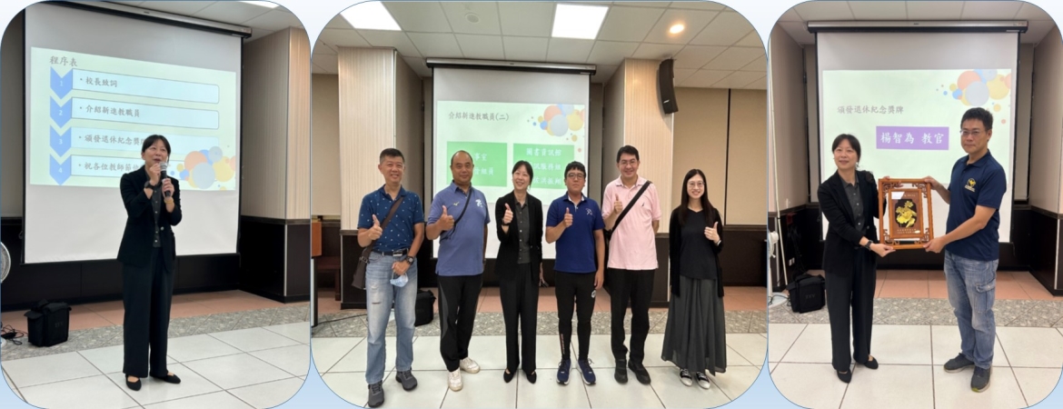 114年9月24日本校辦理慶祝教師節暨迎新茶會活動,由校長介紹新進教職員,並頒發退休紀念金牌,祝全體同仁教師節快樂。