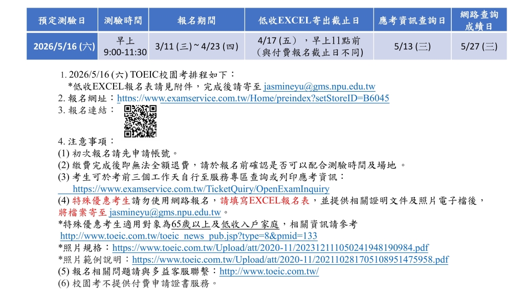 114-2學期【多益校園考】應考須知