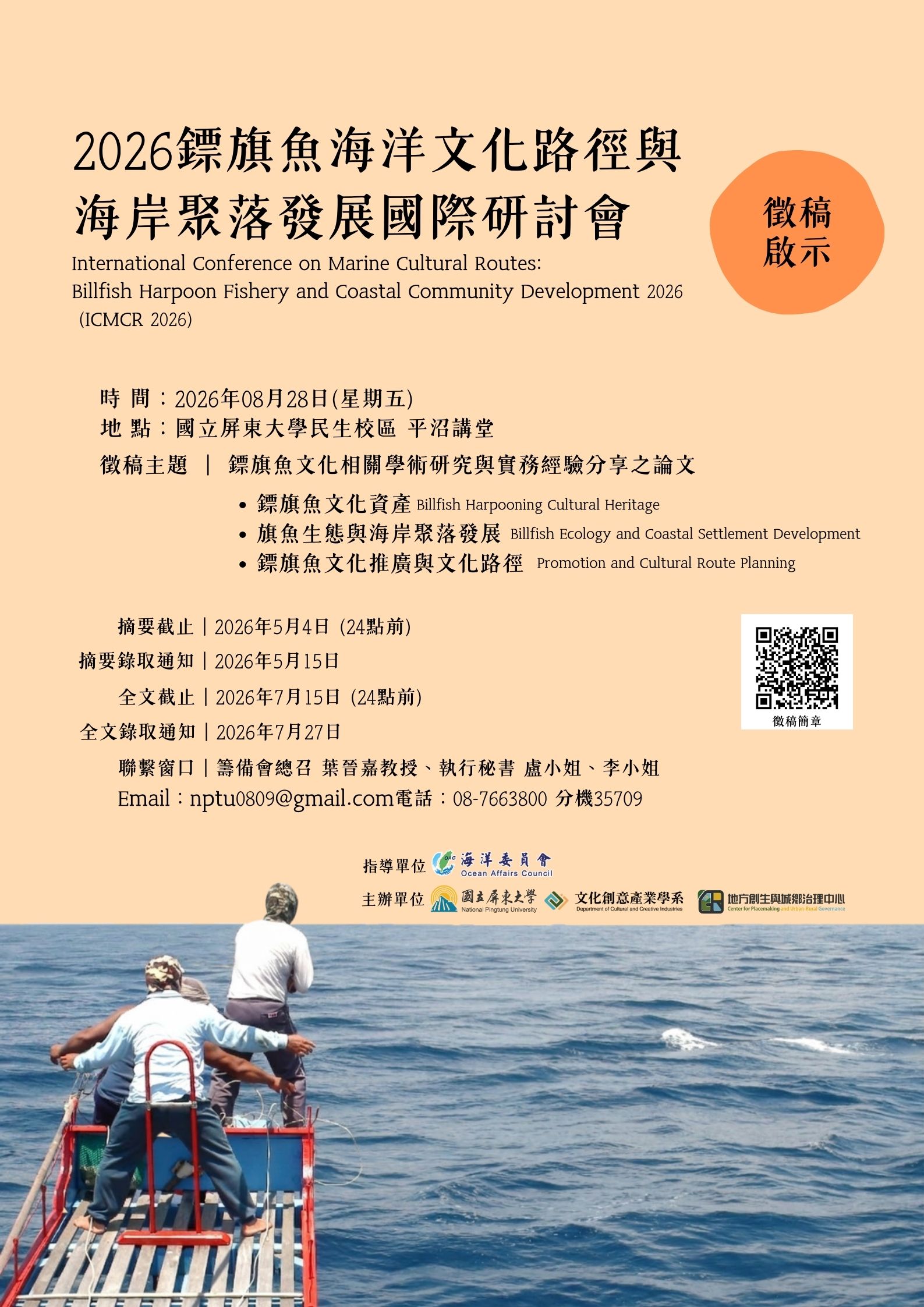 國立屏東大學「2026鏢旗魚海洋文化路徑與海岸聚落發展國際研討會」徵稿資訊