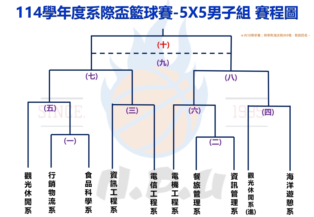 國立澎湖科技大學114學年度全校系際盃籃球錦標賽-5X5男子組 新版賽程圖