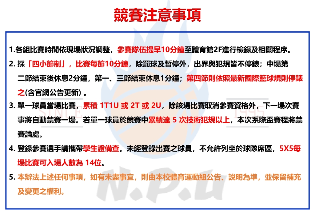 國立澎湖科技大學114學年度全校系際盃籃球錦標賽-5X5男子組 注意事項