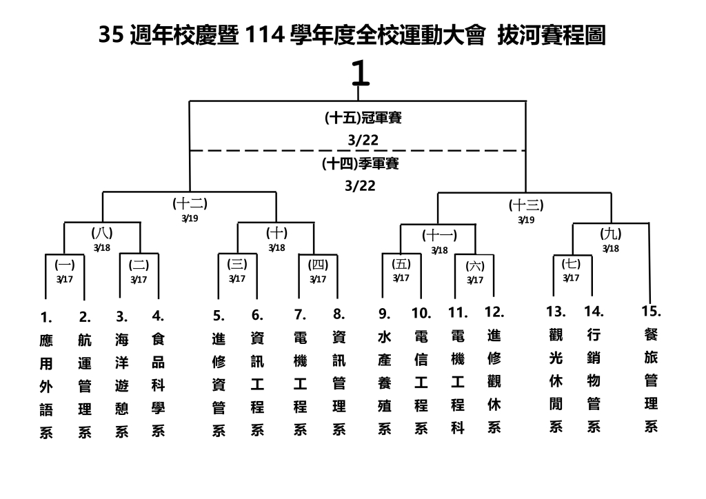 國立澎湖科技大學35週年校慶暨114學年度全校運動大會拔河賽程圖暨賽程表(0319更新)