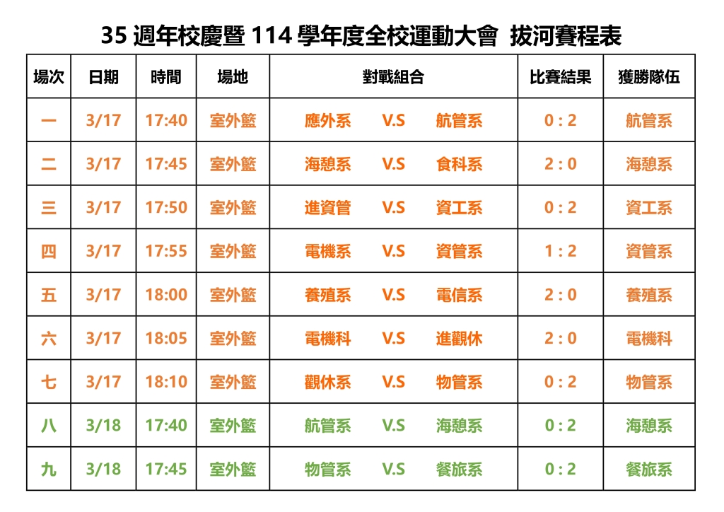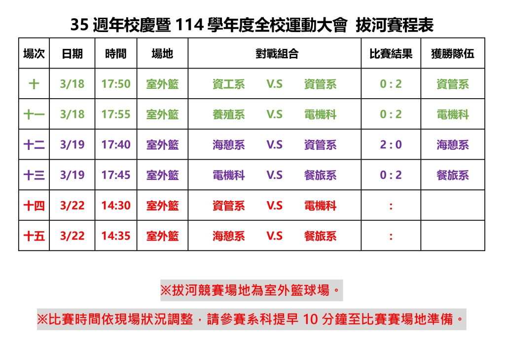 國立澎湖科技大學35週年校慶暨114學年度全校運動大會拔河賽程表(0319更新)-2