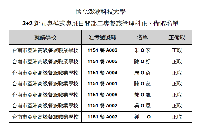 ***請正取生先至網站辦理線上報到(https://forms.gle/88Xq4XLBLQyyUoqy8),於115年4月20日(星期ㄧ)前將錄取報到單,以限時掛號郵寄(以郵戳為憑)回寄或親送至本校教學大樓一樓教務處註冊組。欲放棄錄取之考生,請務必填寫放棄錄取資格聲明書,郵寄或傳真至本校。
