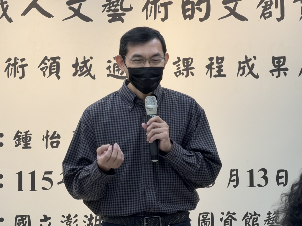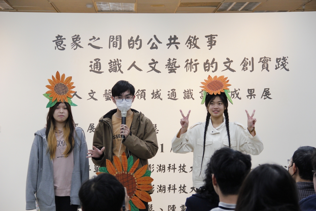 國立澎湖科技大學於115年1月7日(星期三)上午11時舉辦 114學年度人文藝術領域通識課程成果展「意象之間的公共敘事-通識人文藝術的文創實踐」開幕茶會,此成果展期自 115年1月7日至3月13日於澎科大藝文中心展出,圖書資訊館洪健倫館長表示每位同學都是小小藝術家,將這學期學到的轉化成創作作品,也感謝通識教育中心老師用心的付出。誠摯邀請校內外師生與各界朋友蒞臨參觀,一同看見通識人文藝術課程如何把生活經驗、地方記憶與創作實作,轉化為可以被看見、被使用、也能被分享的「公共敘事」。