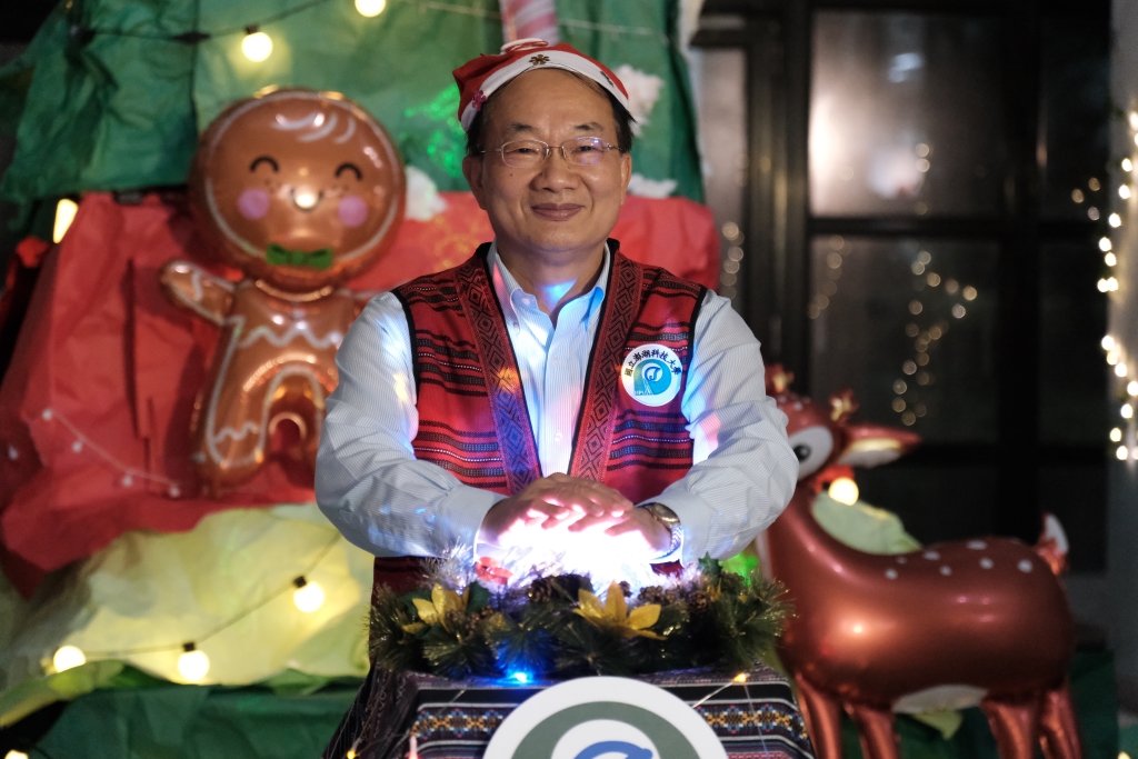 時序進入歲末,澎科大藉著璀璨亮麗豐聖誕點燈活動歡喜慶祝一年來學校辦學成效,迎向充滿希望與挑戰的2024。該校學生活動中心中庭矗立4公尺高環保創意耶誕樹,溫馨歡樂的氣氛瞬間感染整個校園。今年聖誕節即將來臨,澎科大學務處原民學生資源中心特地在12月6日在澎科大學生活動中心舉行「SDGs、原起、共融、永續」聖誕節點燈儀式,在全校歡樂氣氛中揭開序幕,該校黃有評校長帶領師生一起點燈。澎科大表示,自創校以來,今年首度辦理聖誕點燈活動,藉由寒夜中漂亮燈飾讓校園更加溫馨,更希望全體師生點燃心中的活力,迎向充滿希望的2024。為能實踐力行聯合國永續發展目標(SDG),澎科大的創意環保聖誕樹是整體設計及建置都是由校內原住民學生、文化或經濟不利因素學生、資源中心學生、學生志工及校內同仁利用校內回收紙箱攜手共同堆疊搭建完成。