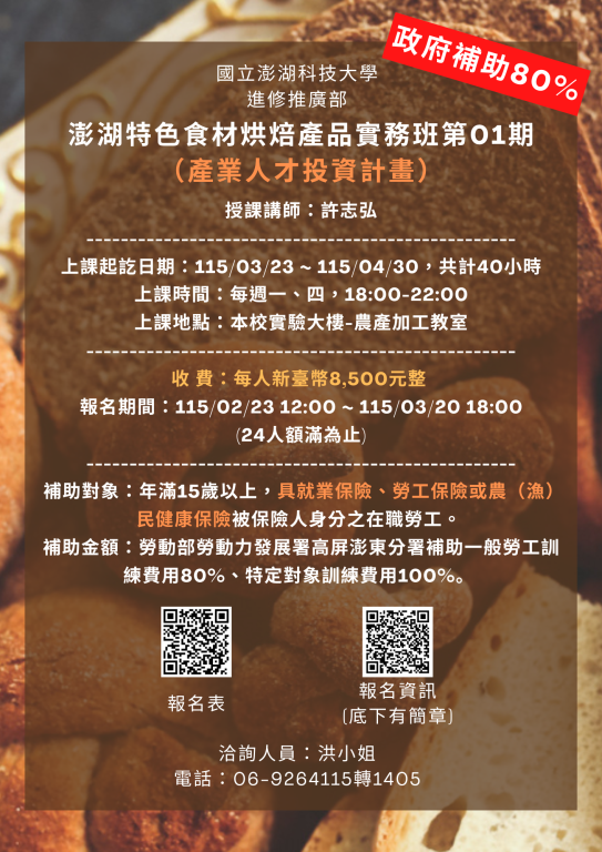【澎湖特色食材烘焙產品實務班第01期】