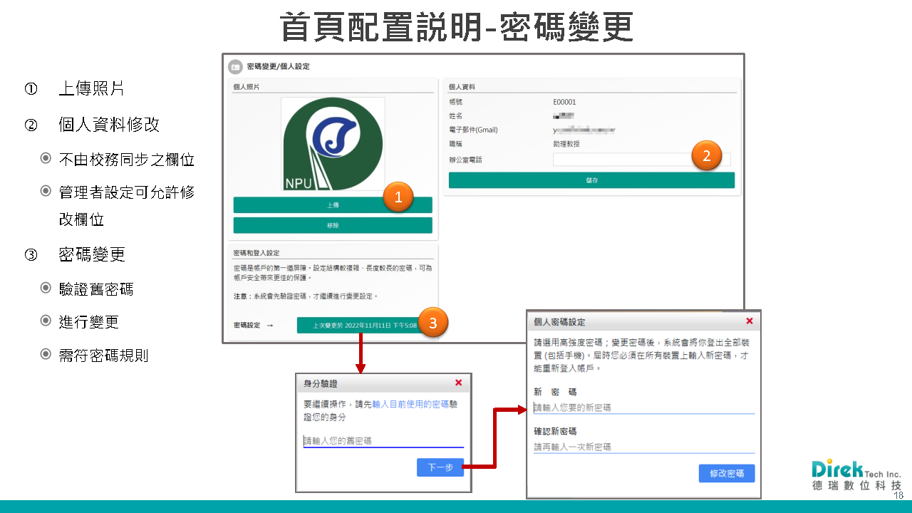 密碼未更改前預設為(Npu@+身份證字號後6碼)。
