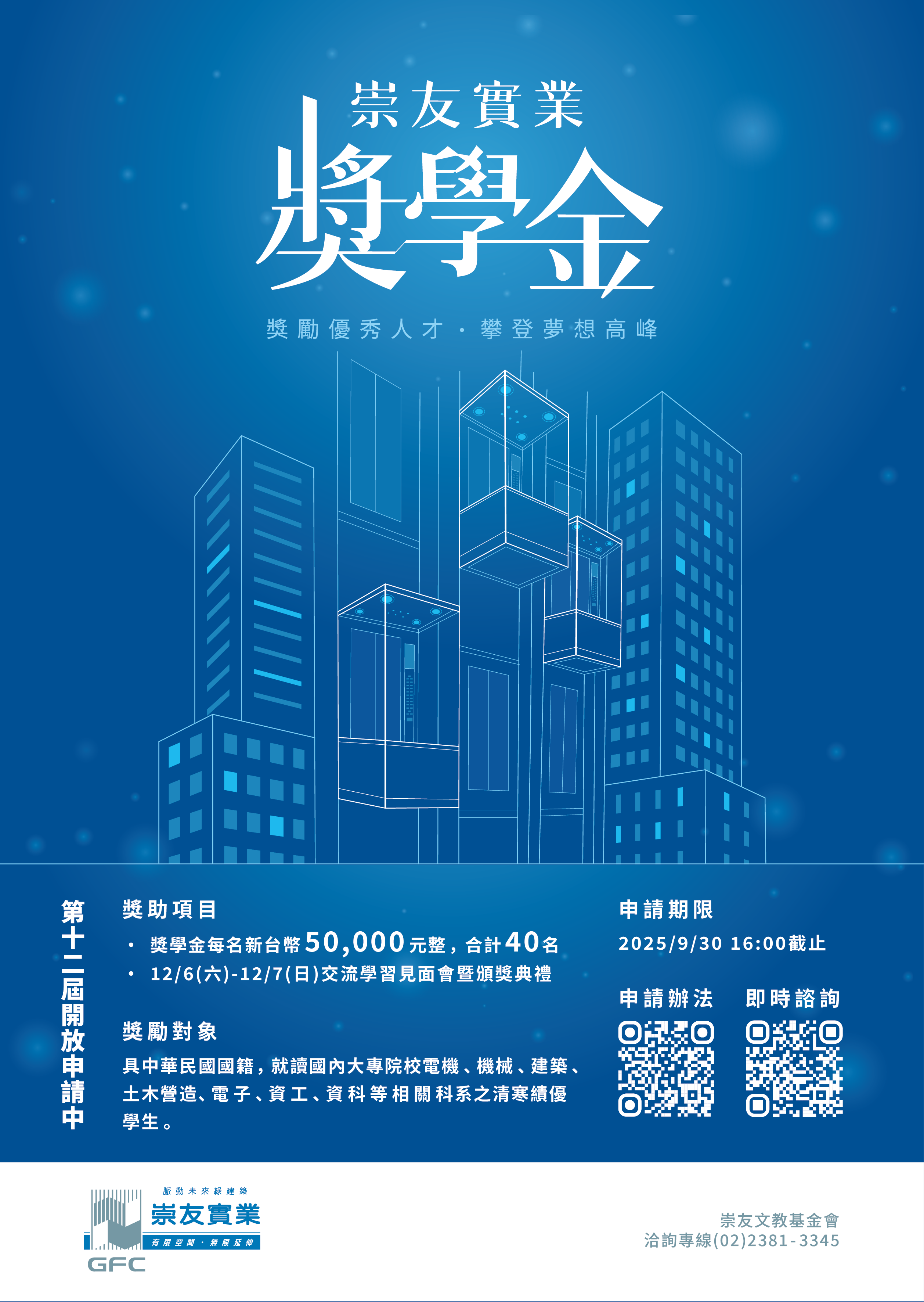 【84】114-1財團法人崇友文教基金會「崇友實業獎學金」**自行申請**