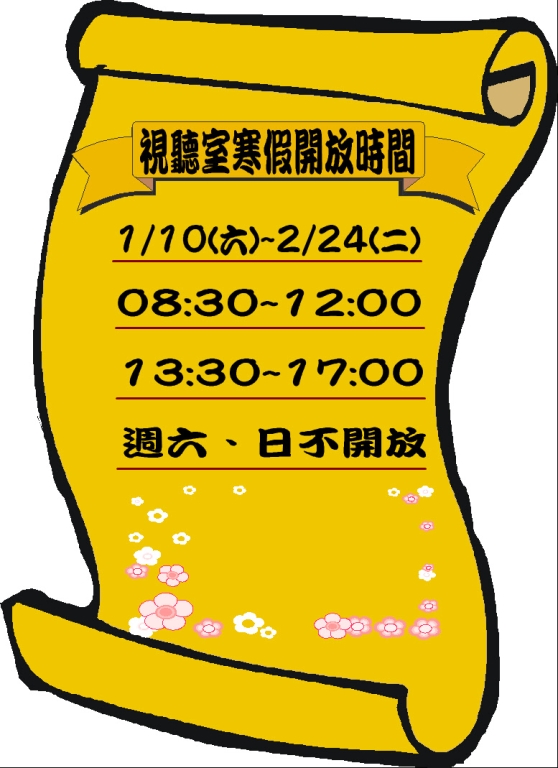 視聽室寒假開放時間公告